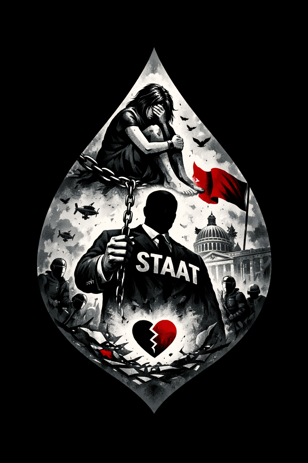 Gewaltmonopol: Der Staat kann mich einsperren, kontrollieren, besteuern, bestrafen, verfolgen, kontrollieren. Er kann mein Geld verwalten, mein Leben regulieren und mich trotzdem nicht wirklich verantwortlich machen.